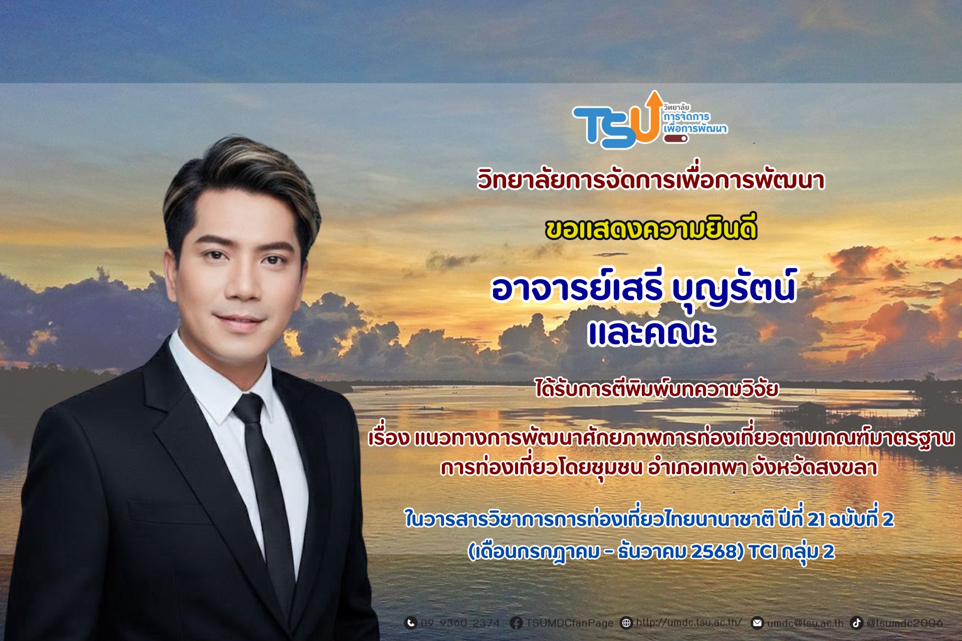 ขอแสดงความยินดีกับ อาจารย์เสรี บุญรัตน์ และคณะ ได้รับการตีพิมพ์บทความวิจัย
