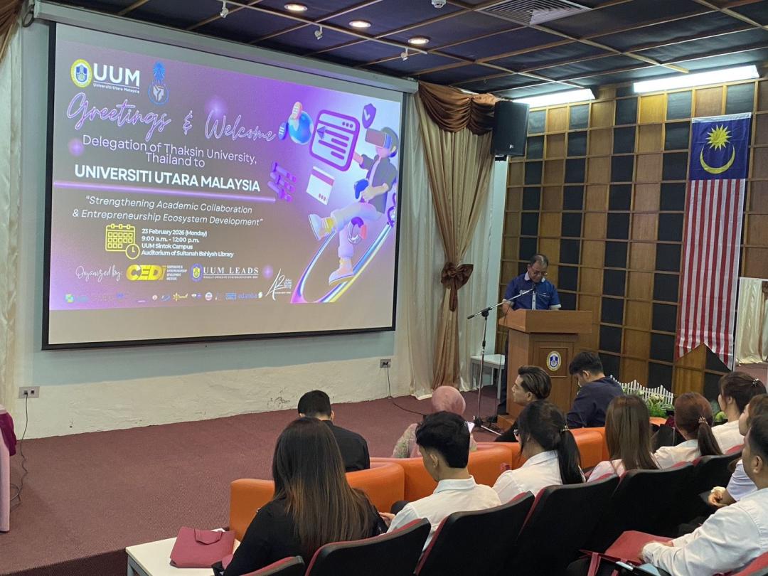 On 23 February 2026, a delegation from the Management for Development College (MDC), Thaksin University (TSU), Thailand, led by the management team, faculty members, and selected students from the TSU-MDC Student Exchange Program (Academic Year 2025), conducted an academic visit to the main campus of Universiti Utara Malaysia (UUM) in Sintok, Kedah Darul Aman.