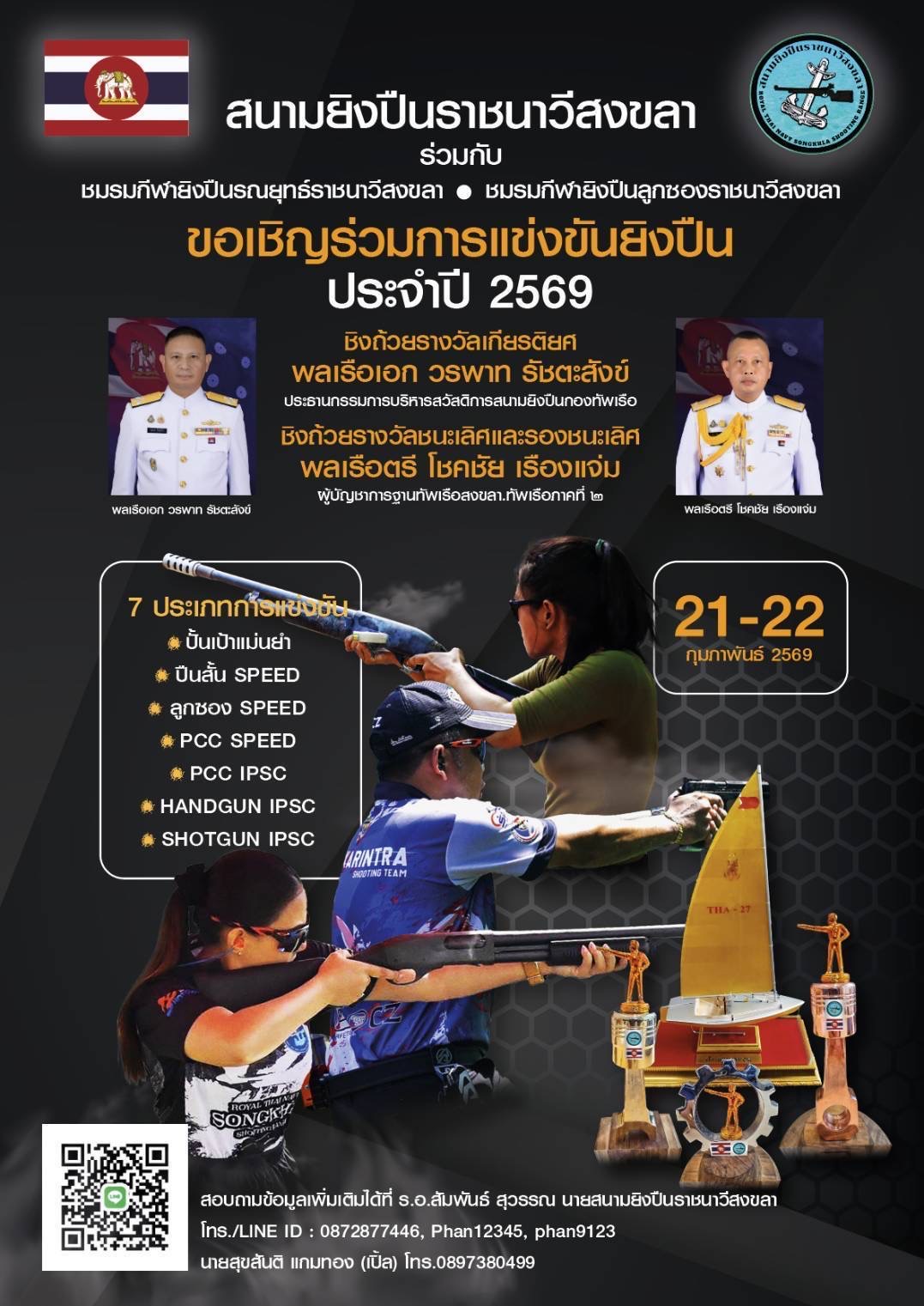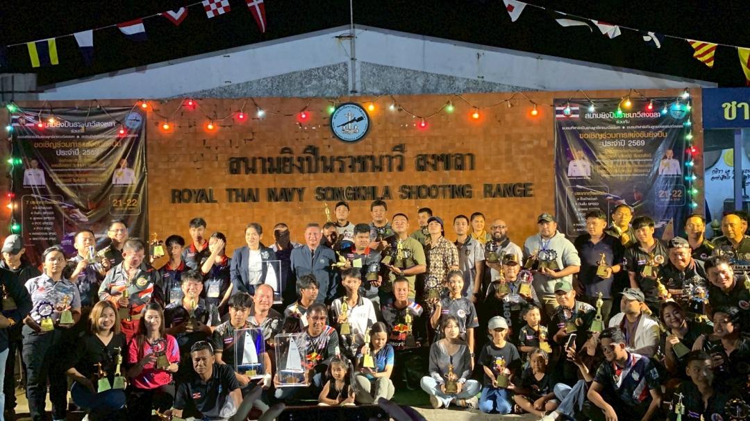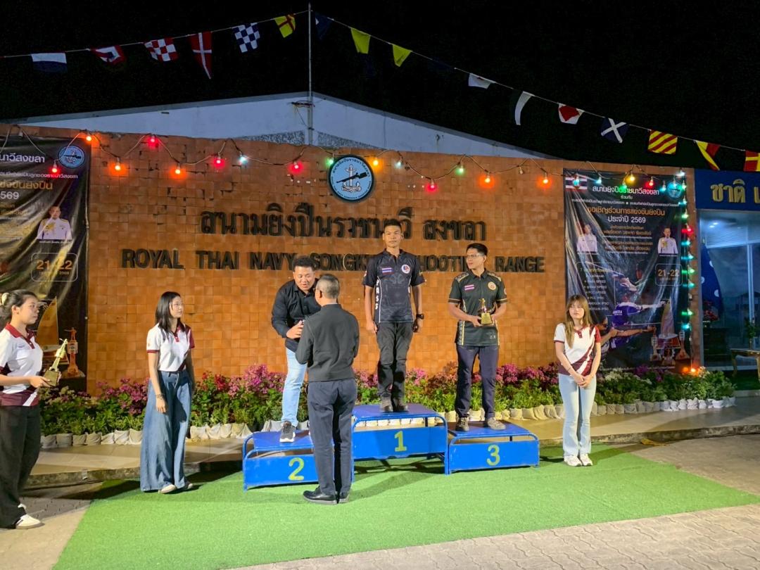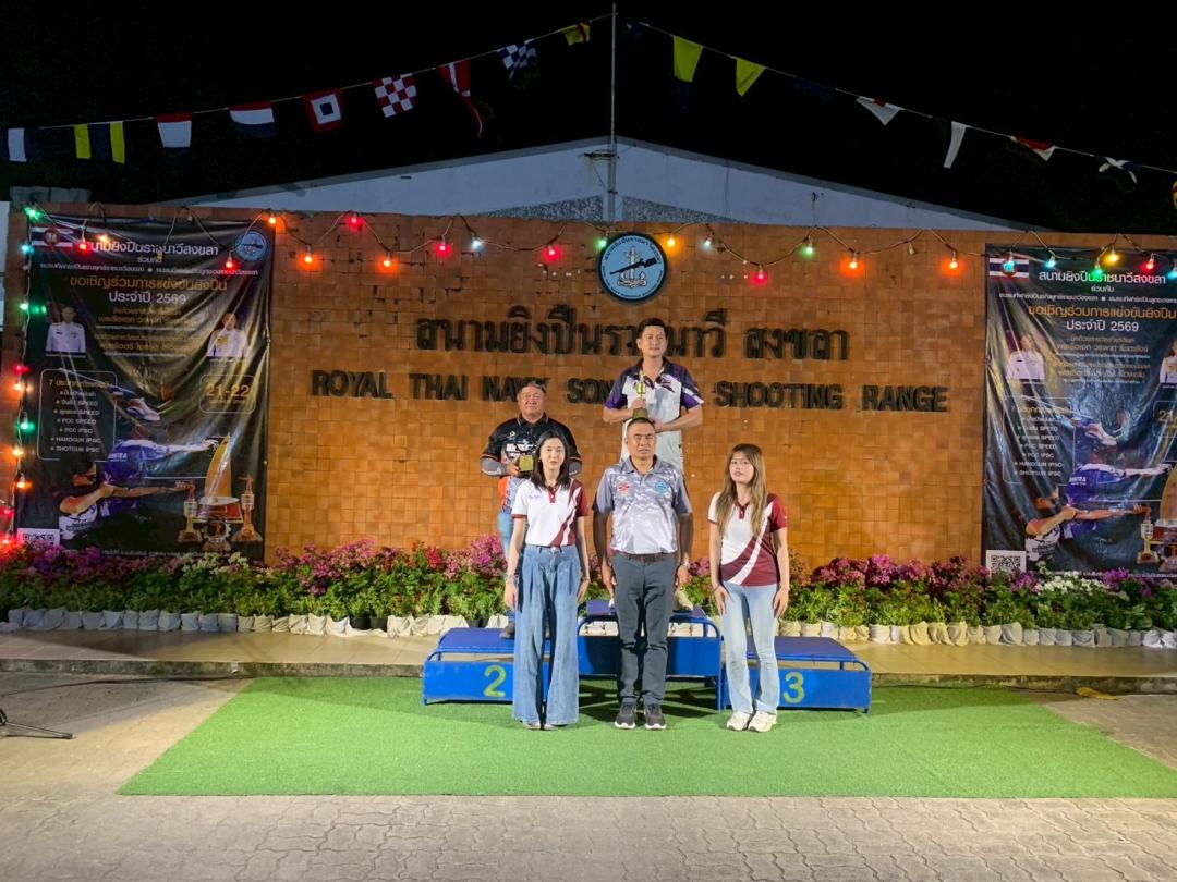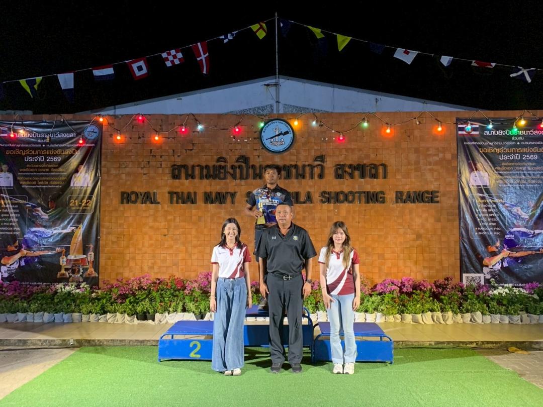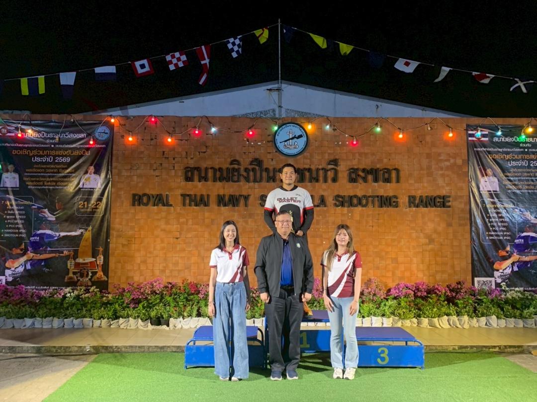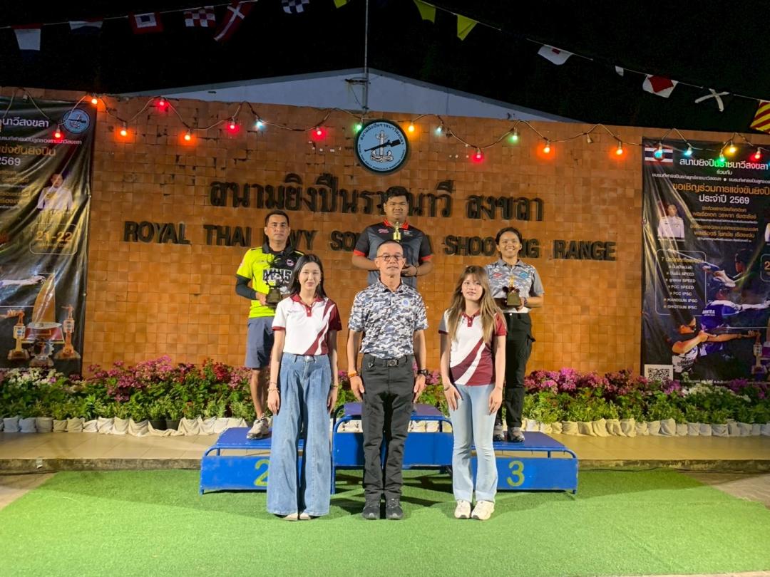 เมื่อวันที่ 21-22 กุมภาพันธ์ 2569 นิสิตหลักสูตรรัฐประศาสนศาสตรบัณฑิต (รป.บ.) สาขาวิชาการบริหารงานตำรวจและกระบวนการยุติธรรม เข้าร่วมเป็นเจ้าหน้าที่บันทึกผลการแข่งขันยิงปืน และปฏิบัติหน้าที่ผู้เชิญรางวัล ณ สนามยิงปืนราชนาวีสงขลานการแข่งขันยิงปืนประจำปี 2569 ชิงถ้วยรางวัลเกียรติยศจาก พลเรือเอก วรพาท รัชตะสงข์ ประธานกรรมการบริหารสวัสดิการสนามยิงปืนกองทัพเรือ และชิงถ้วยรางวัลชนะเลิศและรองชนะเลิศจาก พลเรือตรี โชคชัย เรืองแจ่ม ผู้บัญชาการฐานทัพเรือสงขลา ทัพเรือภาคที่ 2 โดยสนามยิงปืนราชนาวีสงขลา ร่วมกับ ชมรมกีฬายิงปืนรณยุทธ์ราชนาวีสงขลา และ ชมรมกีฬายิงปืนลูกซองราชนาวีสงขลา เพื่อการกุศลและส่งเสริมการท่องเที่ยวของจังหวัดสงขลา การเข้าร่วมกิจกรรมในครั้งนี้สะท้อนให้เห็นถึงศักยภาพ ความมีวินัย ความรับผิดชอบ และจิตอาสาของนิสิต ซึ่งเป็นกำลังสำคัญของสังคมและประเทศชาติในอนาคต พร้อมทั้งเป็นเวทีสำคัญในการพัฒนาทักษะวิชาชีพควบคู่คุณธรรมจริยธรรมตามอัตลักษณ์ของหลักสูตรอย่างแท้จริง