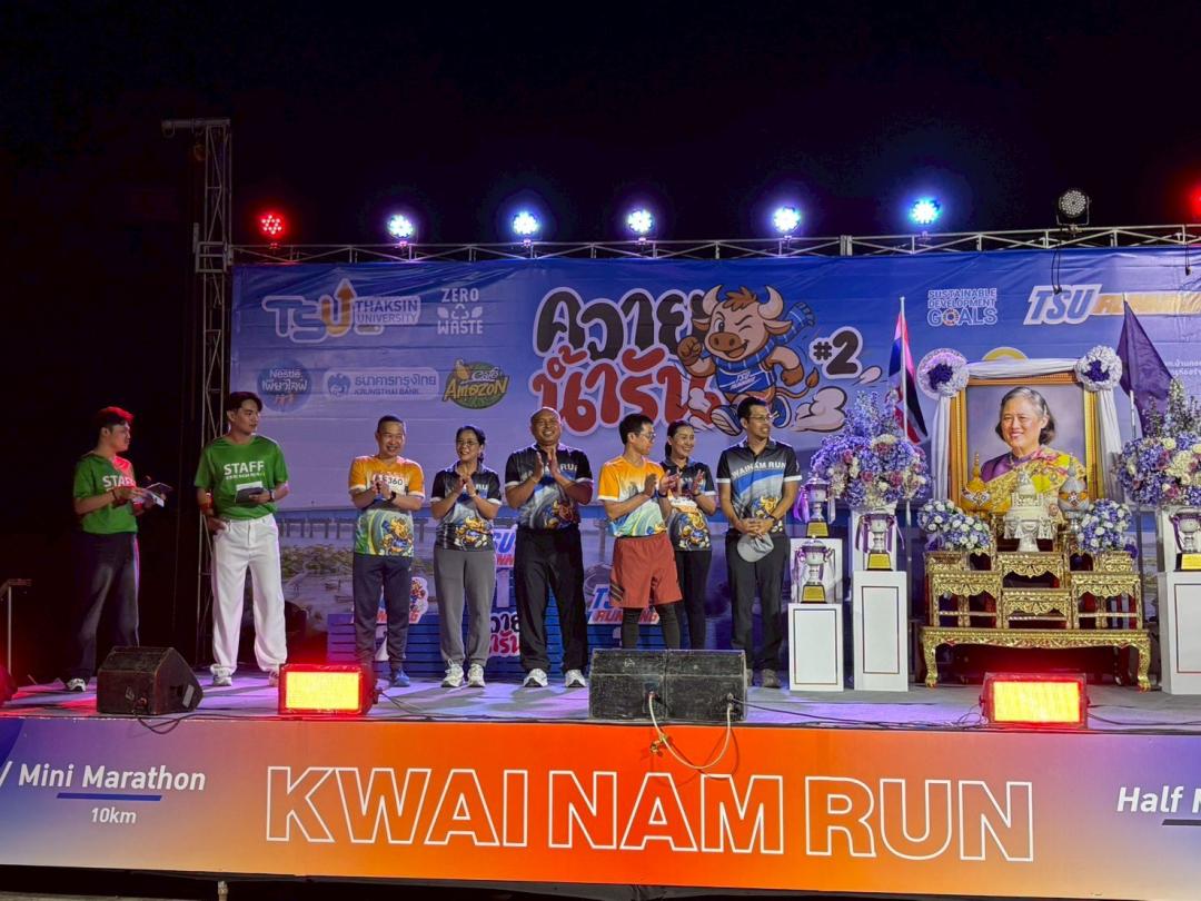 วันที่ 15 มีนาคม 2569 ผู้ช่วยศาสตราจารย์ ดร.ทวนธง ครุฑจ้อน คณบดีวิทยาลัยการจัดการเพื่อการพัฒนา พร้อมด้วยบุคลากรของวิทยาลัยการจัดการเพื่อการพัฒนา เข้าร่วมกิจกรรมงานวิ่ง “ควายน้ำ รัน” ประจำปี 2569 ณ สะพานเฉลิมพระเกียรติ 80 พรรษา ตำบลพนางตุง อำเภอควนขนุน จังหวัดพัทลุง ซึ่งจัดขึ้นเพื่อส่งเสริมการออกกำลังกายและการท่องเที่ยวของพื้นที่ โดยมีประชาชนและนักวิ่งจากหลายหน่วยงานเข้าร่วมกิจกรรมอย่างคึกคัก