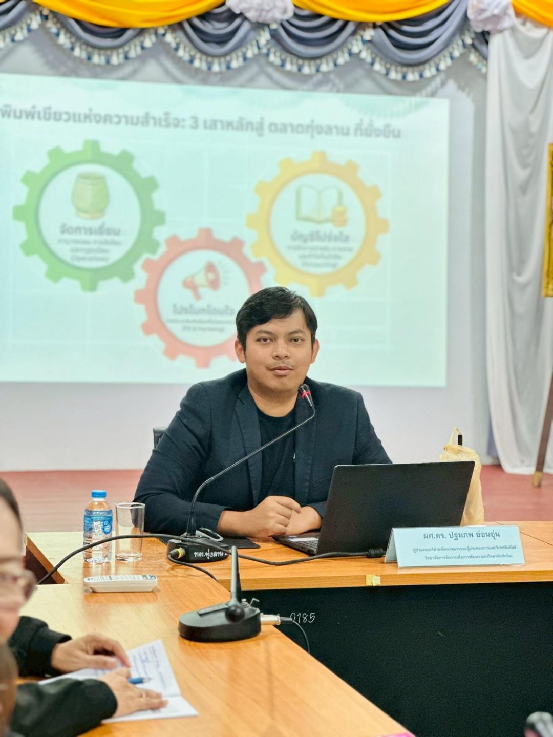 การประชุมครั้งนี้ อาจารย์ปฐมภพ อ่อนอุ่น ผู้ช่วยคณบดีฝ่ายพัฒนาสมรรถนะผู้ประกอบการและวิเทศสัมพันธ์ วิทยาลัยการจัดการเพื่อการพัฒนา มหาวิทยาลัยทักษิณ เป็นวิทยากรบรรยายและถ่ายทอดองค์ความรู้ในประเด็นสำคัญ ได้แก่ การบริหารจัดการตลาดชุมชนให้มีประสิทธิภาพ การจัดทำบัญชีรายรับ รายจ่าย และการพัฒนาช่องทางการประชาสัมพันธ์ตลาด ทั้งในรูปแบบออนไลน์และออฟไลน์ เพื่อเพิ่มขีดความสามารถในการแข่งขันของผู้ประกอบการชุมชน