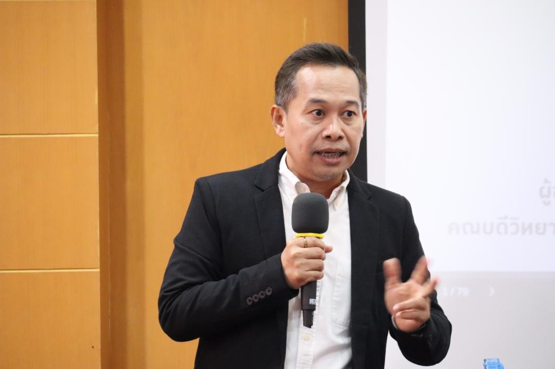 การจัดอบรมครั้งนี้ ผู้ช่วยศาสตราจารย์ ดร.ทวนธง ครุฑจ้อน คณบดีวิทยาลัยการจัดการเพื่อการพัฒนา มหาวิทยาลัยทักษิณ ได้รับเกียรติเป็นวิทยากรบรรยายในหัวข้อ “ผู้นำการเปลี่ยนแปลงกับความท้าทายโลกยุคใหม่ (VUCA World) ในบริบทของเทศบาลตำบลควนโดน เพื่อพัฒนาและสร้างผู้นำการเปลี่ยนแปลงตามเป้าหมาย”  โดยนำกระบวนการถ่ายทอดองค์ความรู้และประสบการณ์ เพื่อเสริมสร้างศักยภาพผู้นำชุมชนให้สามารถปรับตัว รับมือกับความเปลี่ยนแปลงในโลกยุคใหม่ที่มีความผันผวน ไม่แน่นอน ซับซ้อน และคลุมเครือ (VUCA World) ได้อย่างมีประสิทธิภาพ  ณ ห้องประชุมสภาเทศบาลตำบลควนโดน  สำนักงานเทศบาลตำบลควนโดน อำเภอควนโดน จังหวัดสตูล